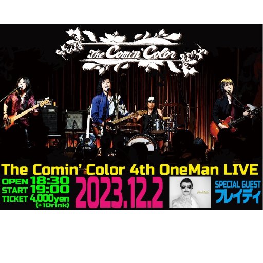 The Comin' Color【URA(ウラ): ボーカル&ギター/GAKU(ガク): ベース/ARK(アーク): ギター/NIKKI (ニッキ): ドラム】、Special Guest【フレイディ】