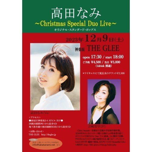 | เว็บไซต์ที่เกี่ยวข้อง | http://theglee.jp/schedule/%e9%ab%98%e7%94%b0%e3%81%aa%e3%81%bf%ef%bd%9echristmas-special-duo-live%ef%bd%9e/ |