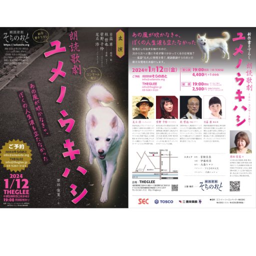 | เว็บไซต์ที่เกี่ยวข้อง | http://theglee.jp/schedule/%e6%9c%97%e8%aa%ad%e6%ad%8c%e5%8a%87%e3%81%9d%e3%82%89%e3%81%ae%e3%81%8a%e3%81%a8-%e6%96%b0%e4%bd%9c%e5%85%ac%e6%bc%94%e3%80%90%e3%83%a6%e3%83%a1%e3%83%8e%e3%82%a6%e3%82%ad%e3%83%8f%e3%82%b7%e3%80%91/ |