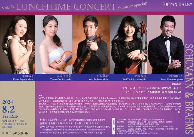 | ค่าธรรมเนียมเข้าร่วม | 全席指定 1,500円/トッパンホールクラブ会員無料(要予約)*お一人様2席まで |