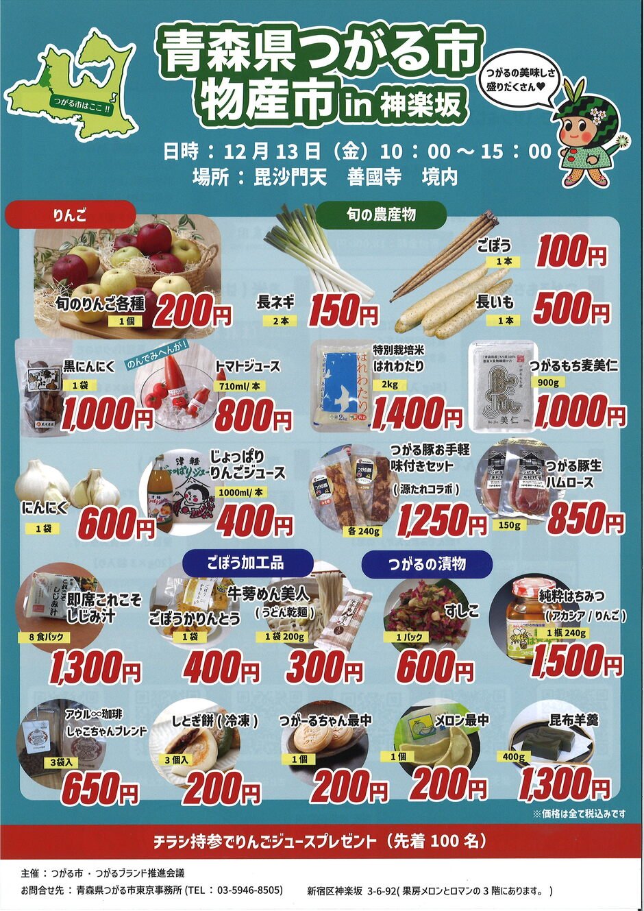 つがる市の特産品である農産物やブランド認定加工品などが買える物産市が、毘沙門天善國寺境内で開催されます。この機会をぜひお見逃しなく!