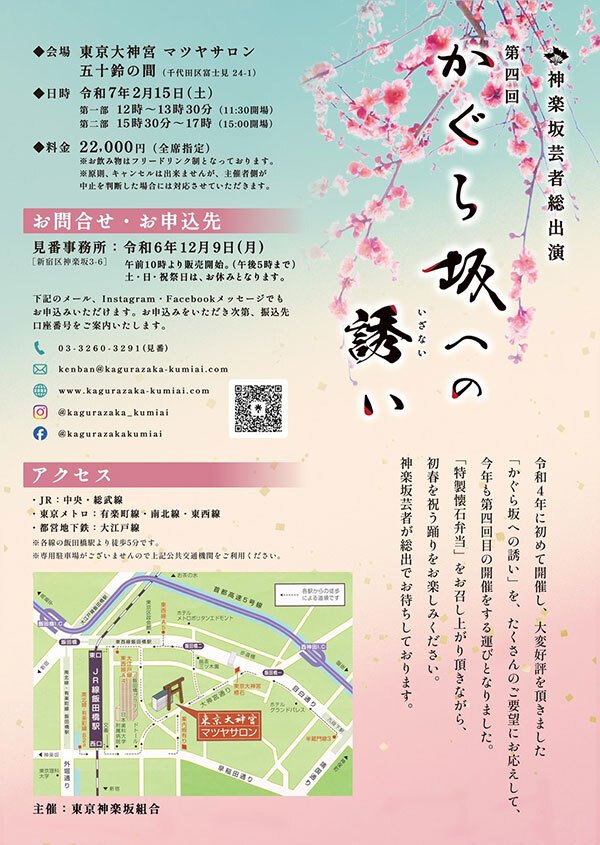 令和4年に初めて開催し、大好評をいただきました「かぐら坂への誘い」を、たくさんのご要望にお応えして、今年も開催する運びとなりました。