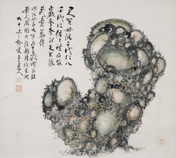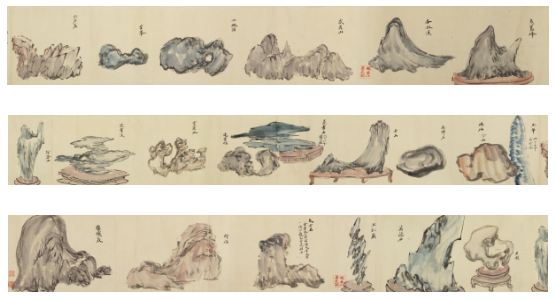日比義也コレクションは、日本・中国の愛石家たちが石を主題に作った書画からなります。本コレクションを築いた日比義也氏は鉄道会社運営のかたわら、盆石書画の研究と蒐集に努められました。