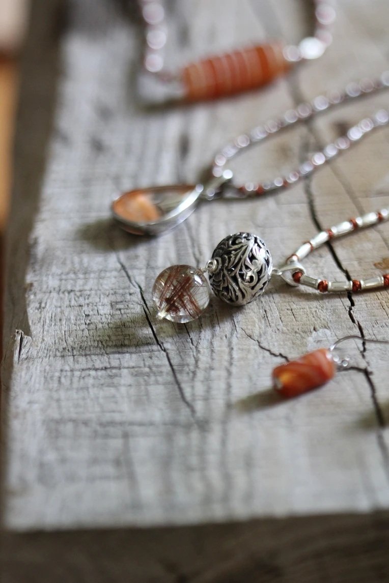 カレンシルバーと合わせ広東糸で編み込んだ作品は、東洋的な感性と長年欧米のデザインで培った感覚をミックスしたモダンアジアンテイストです。