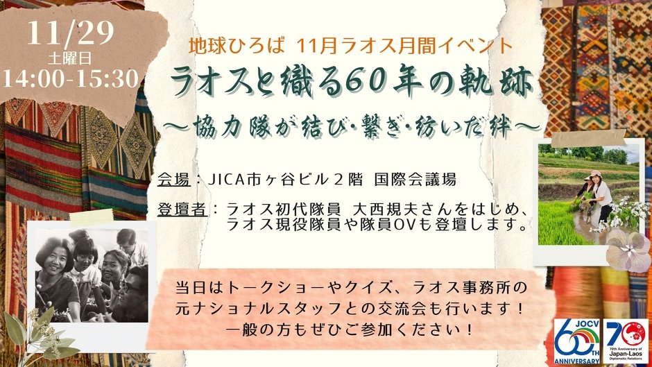 11月29日イベント「ラオスと織る60年の軌跡-協力隊が結び・繋ぎ・紡いだ絆-」