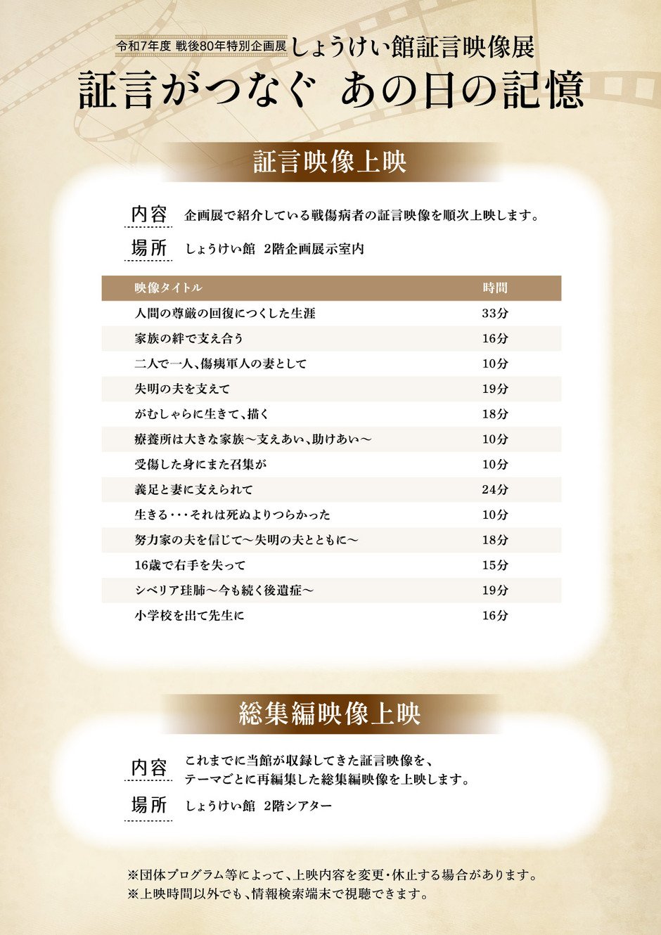 【入館無料】しょうけい館証言映像展 証言がつなぐ あの日の記憶 -戦後80年 特別企画展-