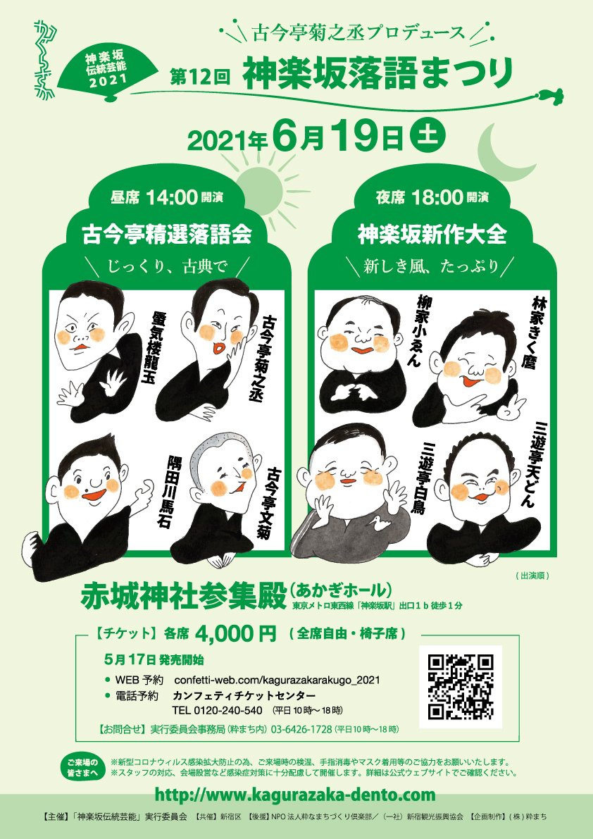 | สถานที่ | 赤城神社参集殿(あかぎホール) (新宿区赤城元町1-10) 東京メトロ東西線「神楽坂駅」出口1b 徒歩1分 都営大江戸線「牛込神楽坂駅」出口A3 徒歩8分 |