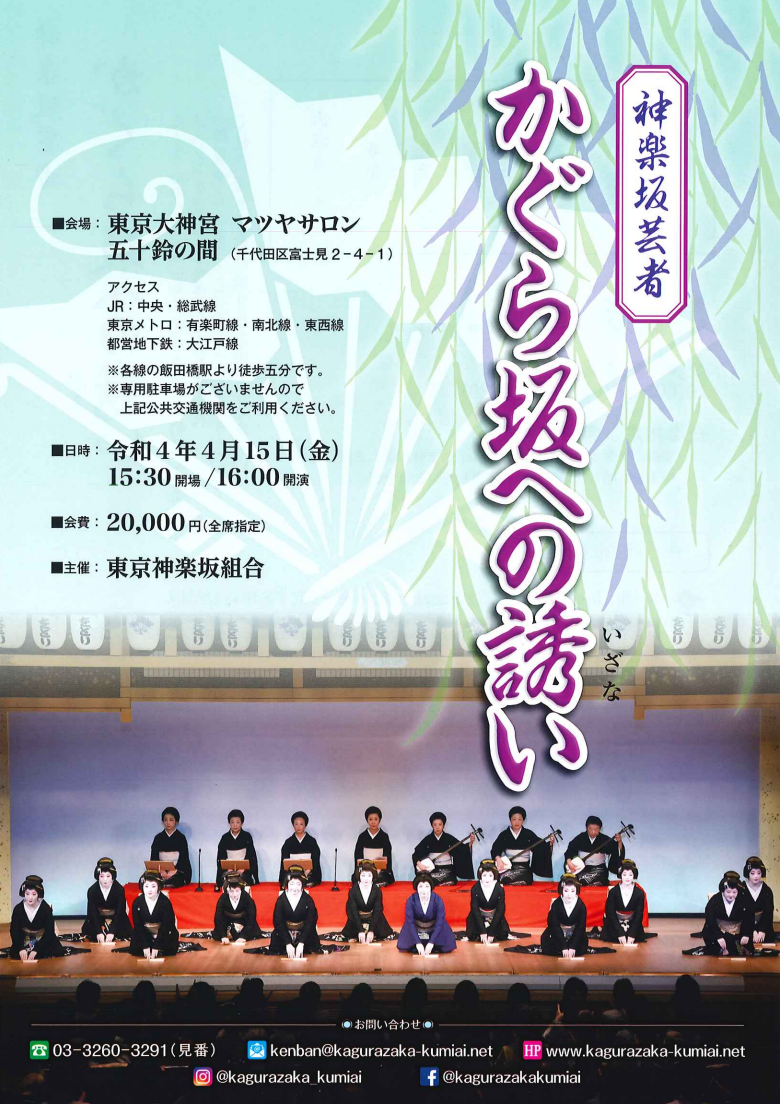 | ติดต่อเรา | 東京神楽坂組合 お問い合わせ:☎03-3260-3291(見番) メール:kenban@kagurazaka-kumiai.net |