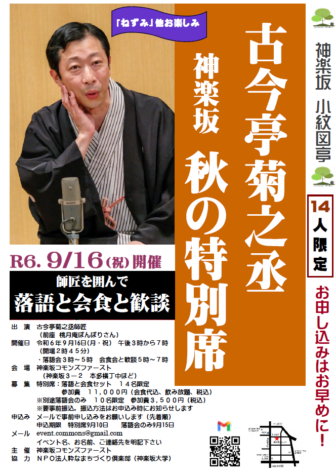 神楽坂小紋図亭 人数限定、「古今亭菊之丞 神楽坂 秋の特別席」