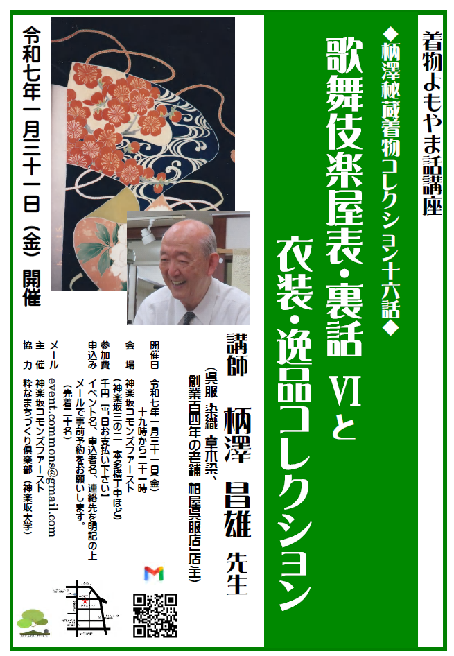 神楽坂コモンズファースト講座 着物・染め物よもやま話「柄澤昌雄コレクション第16話」~歌舞伎楽屋表・裏話Ⅵと、衣装・逸品コレクション~(2025/1/31)