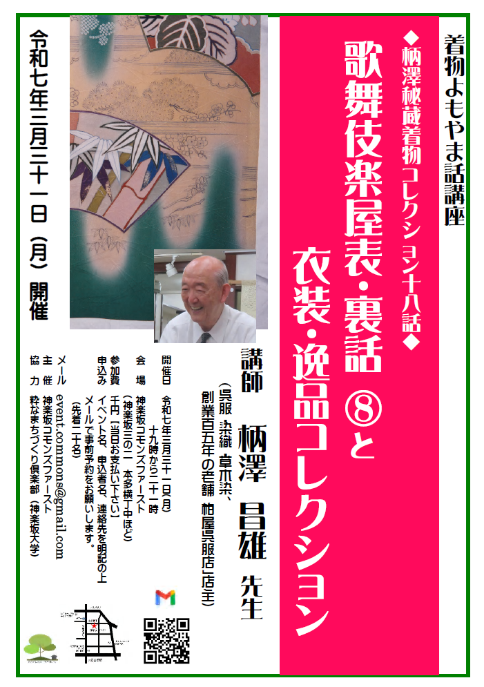 神楽坂コモンズファースト講座 着物・染め物よもやま話「柄澤昌雄コレクション第18話」~歌舞伎楽屋表・裏話Ⅷと、衣装・逸品コレクション~(2025/3/31)