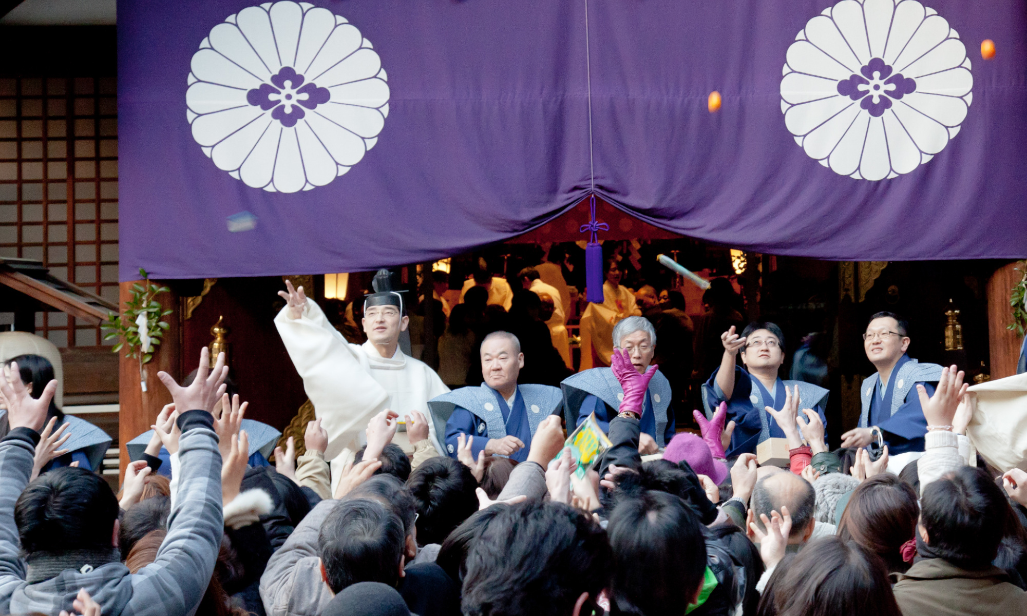 その後はご住職、あでやかな芸者衆、裃(かみしも)姿の善男善女の豆まきと、神楽坂ならではの節分祭にご参加いただけます。