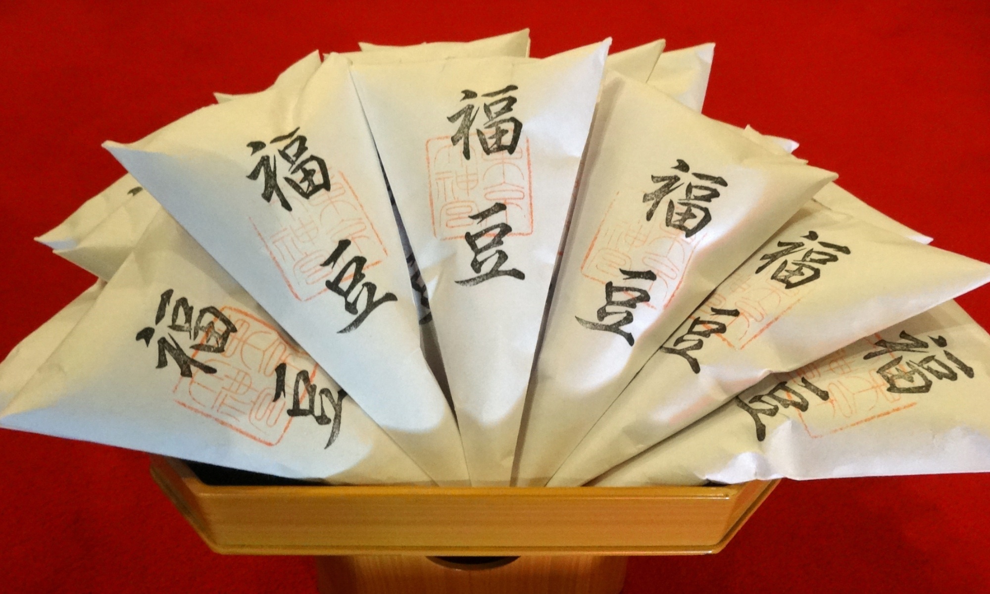 当日は、豆まきに参加する子どもたち全員に、袋詰めされたお供物(菓子)が配られます。