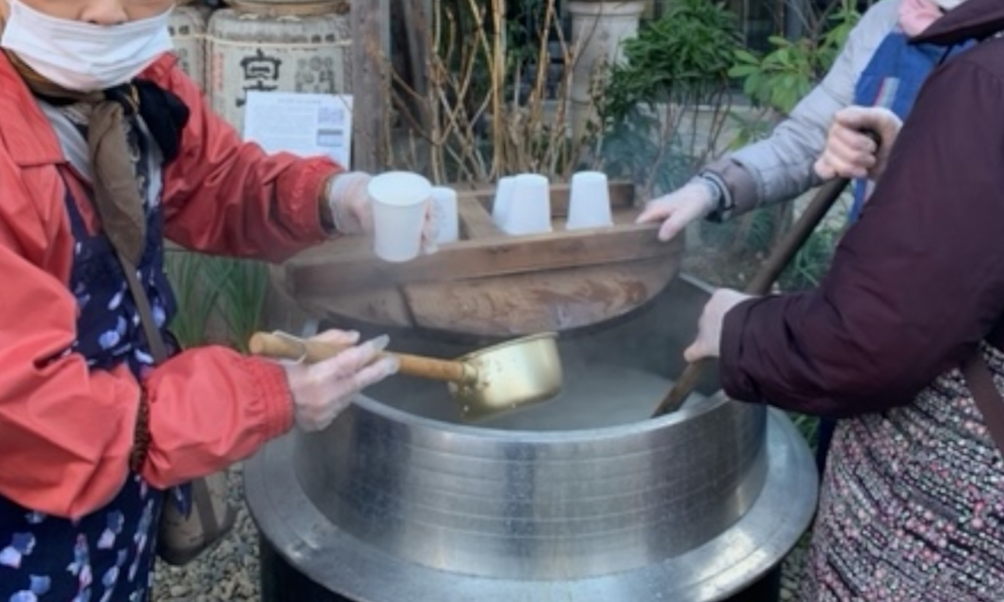 境内でふるまわれる甘酒で心と体をあたためて、厄払いにご参加ください。